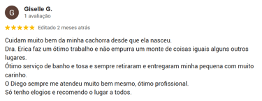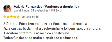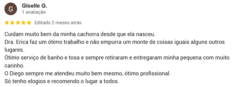 A clínica é reconhecida pelo atendimento ético, acolhedor e personalizado. Em constante atualização, a Dra. Érica realiza cursos nas áreas de Clínica de Felinos, Dermatologia, Endocrinologia e atualmente cursa pós-graduação em Clínica de Felinos.